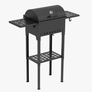 Специальные заслонки в крышке и передней стенки позволяют регулировать необходимый уровень подачи воздуха. А с помощью термометра можно легко следить за температурой внутри. Гриль хорошо поддерживает жар, не требуя большого количества топлива, благодаря отверстиям для циркуляции воздуха. Боковые и нижняя полки предназначены для размещения посуды или других предметов в доступном месте.