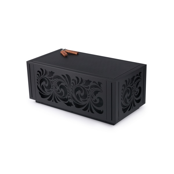 Дизайн облицовки в стиле традиционной хохломской росписи выполнен в элегантном черном цвете.